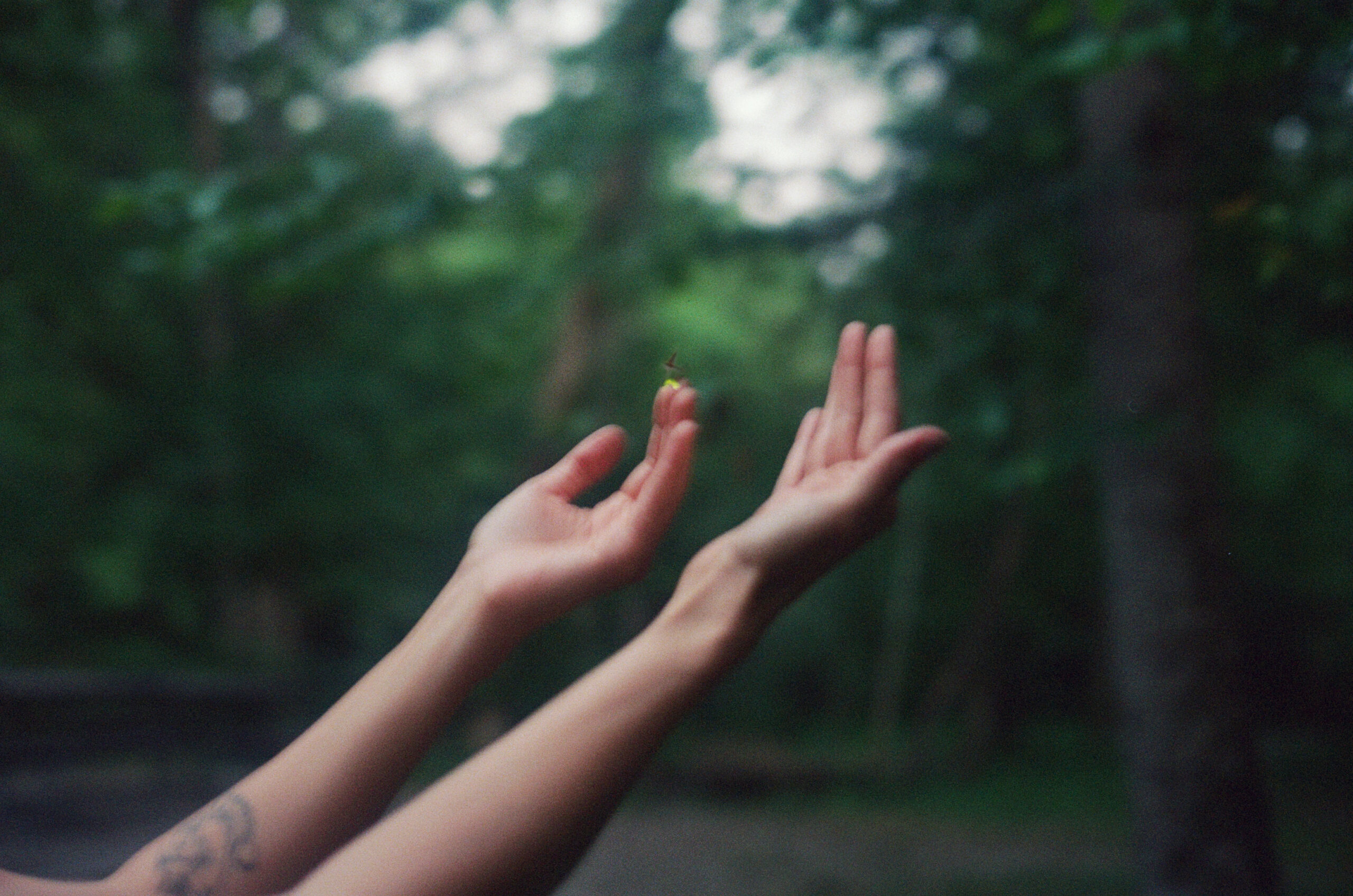I made the choice to shoot film which I only half regret. It was definitely the most challenging scene to shoot: it was dark (naturally), and fireflies are small, and they move. I pushed all my film and with each closing of the shutter during my long exposures, I really took a chance with God. About half of my pictures ended up completely black, while the other ones glimmered with a sliver of the magic I had seen with my two eyes. Every time there was a frame with even a distant feeling of being an image, I held on to it to see what it might mean.
