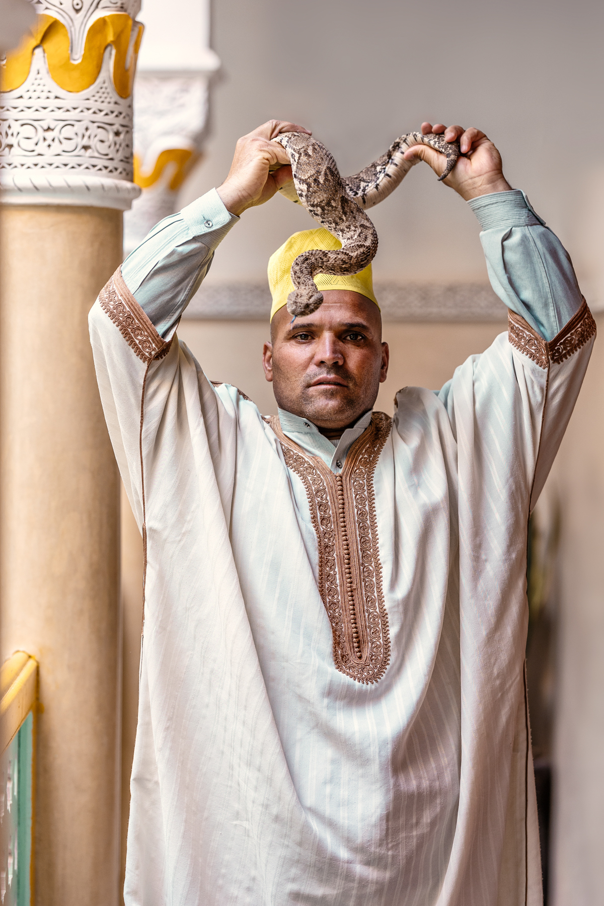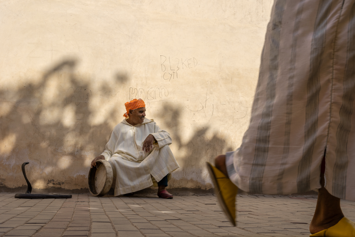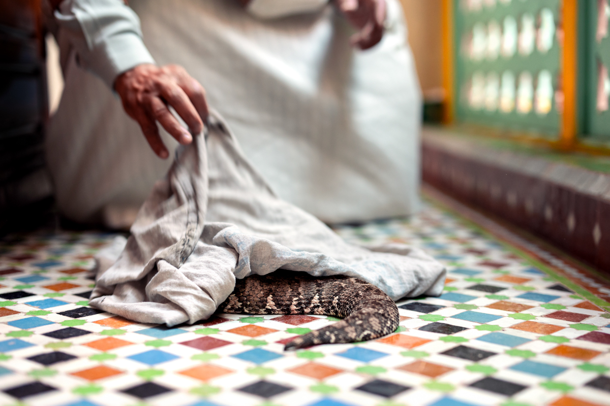 Snake charming has been practised in Jemaa el-Fna for centuries, arriving in Morocco around 500 years ago. Today, only five families continue the tradition. The Sadik family is one of them.